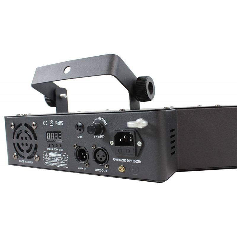 - 4 Mode de fonctionnements : Auto, DMX, Maître/Esclave, détection musicale
